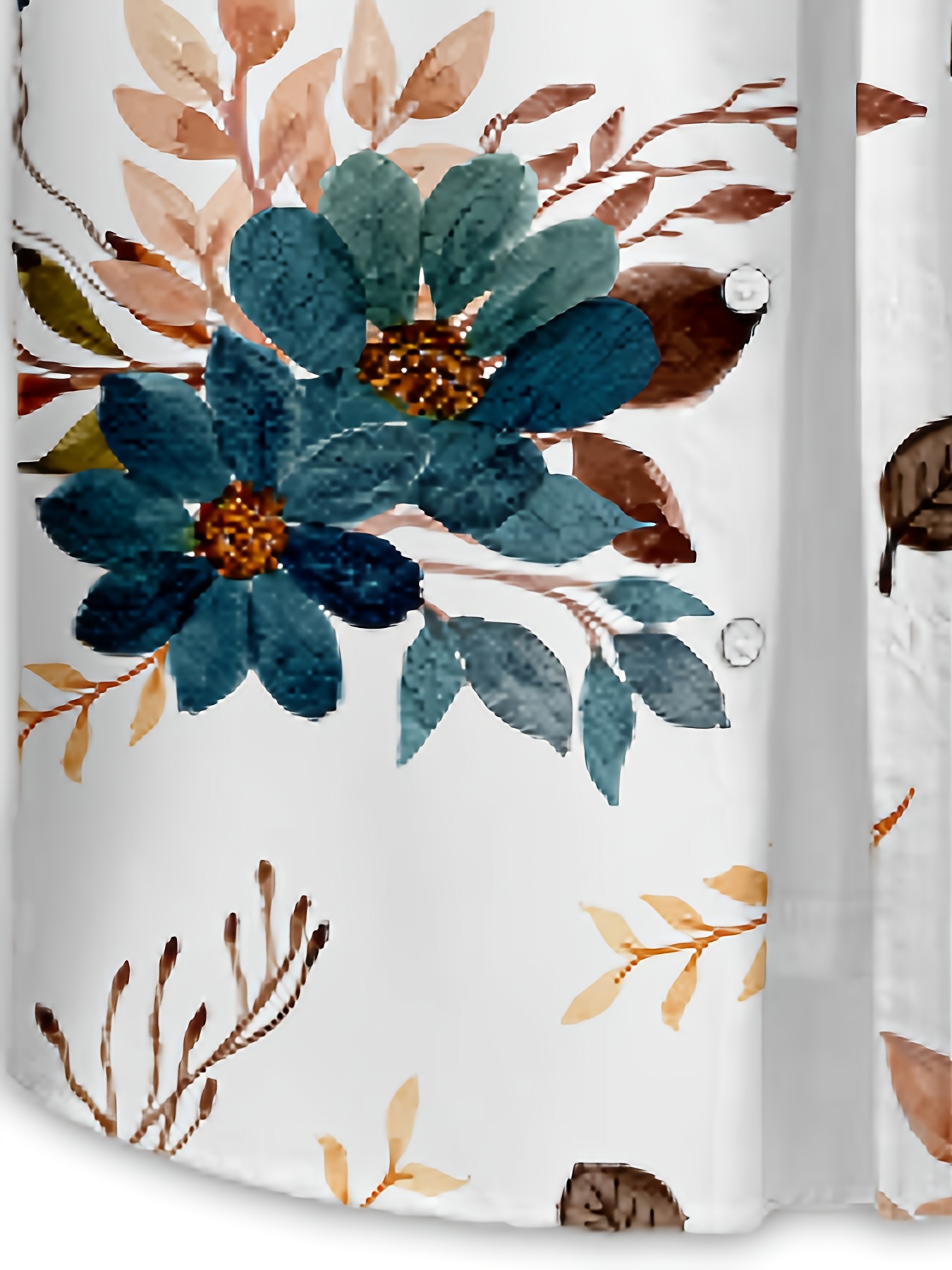 Men'S Floral Print Short Sleeve Shirt - 3D Print Blue, Orange & Brown Flowers & Leaves, Casual Summer Style with Button-Up Collar, Lightweight Polyester Fabric for Casual Attire, Floral Shirt