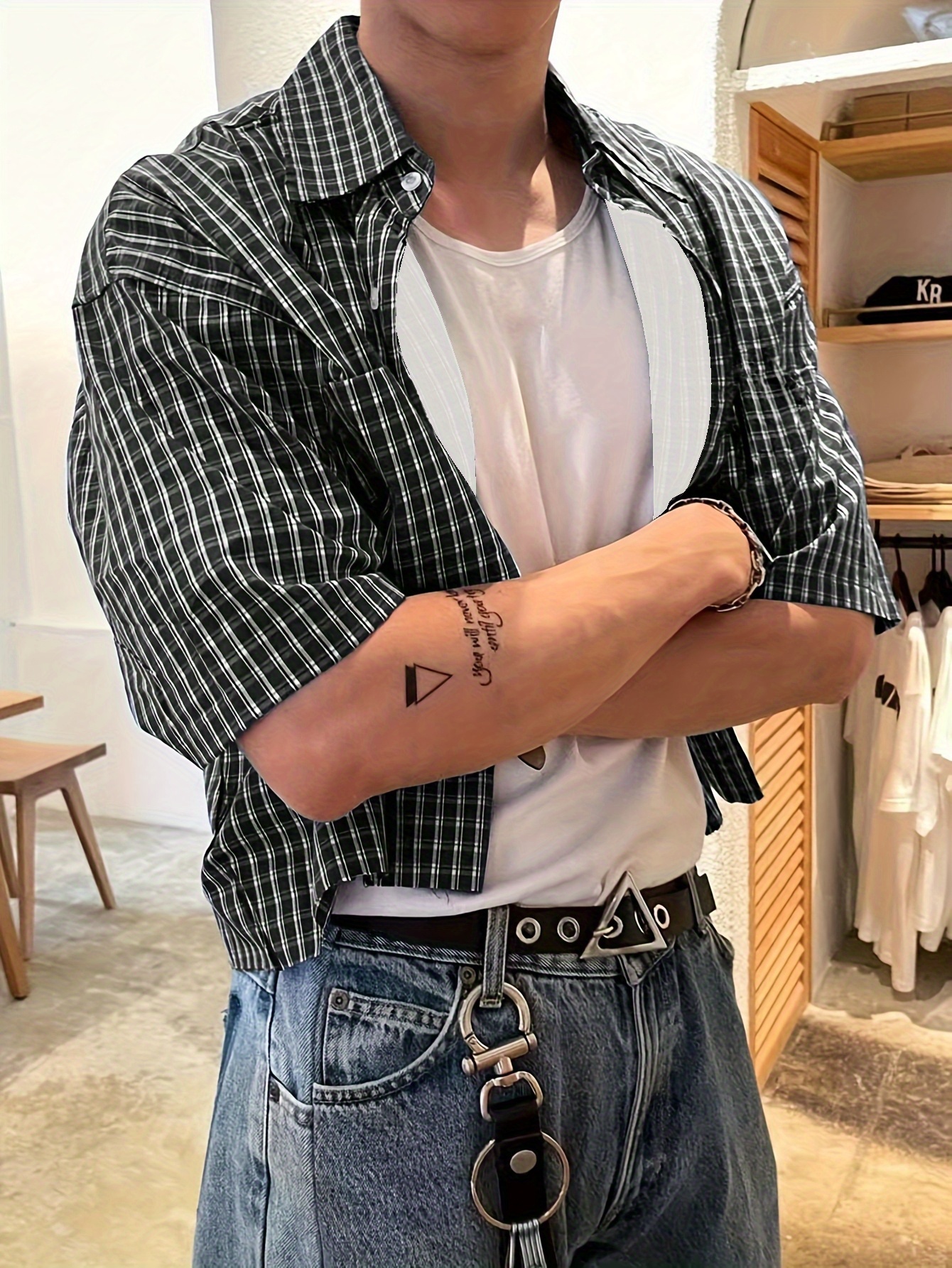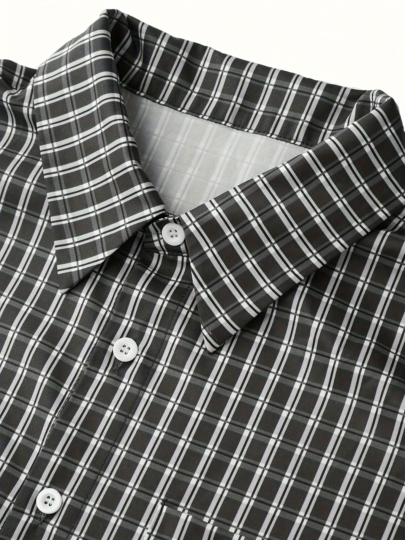 Casual Plaid Shirt for Men, Spring Summer Fall, Short Sleeve, Suitable for Casual Comfort, Holidays, Dates, and Daily Wear, 100% Polyester, Machine Washable, Not Dry Cleanable, WXY9331