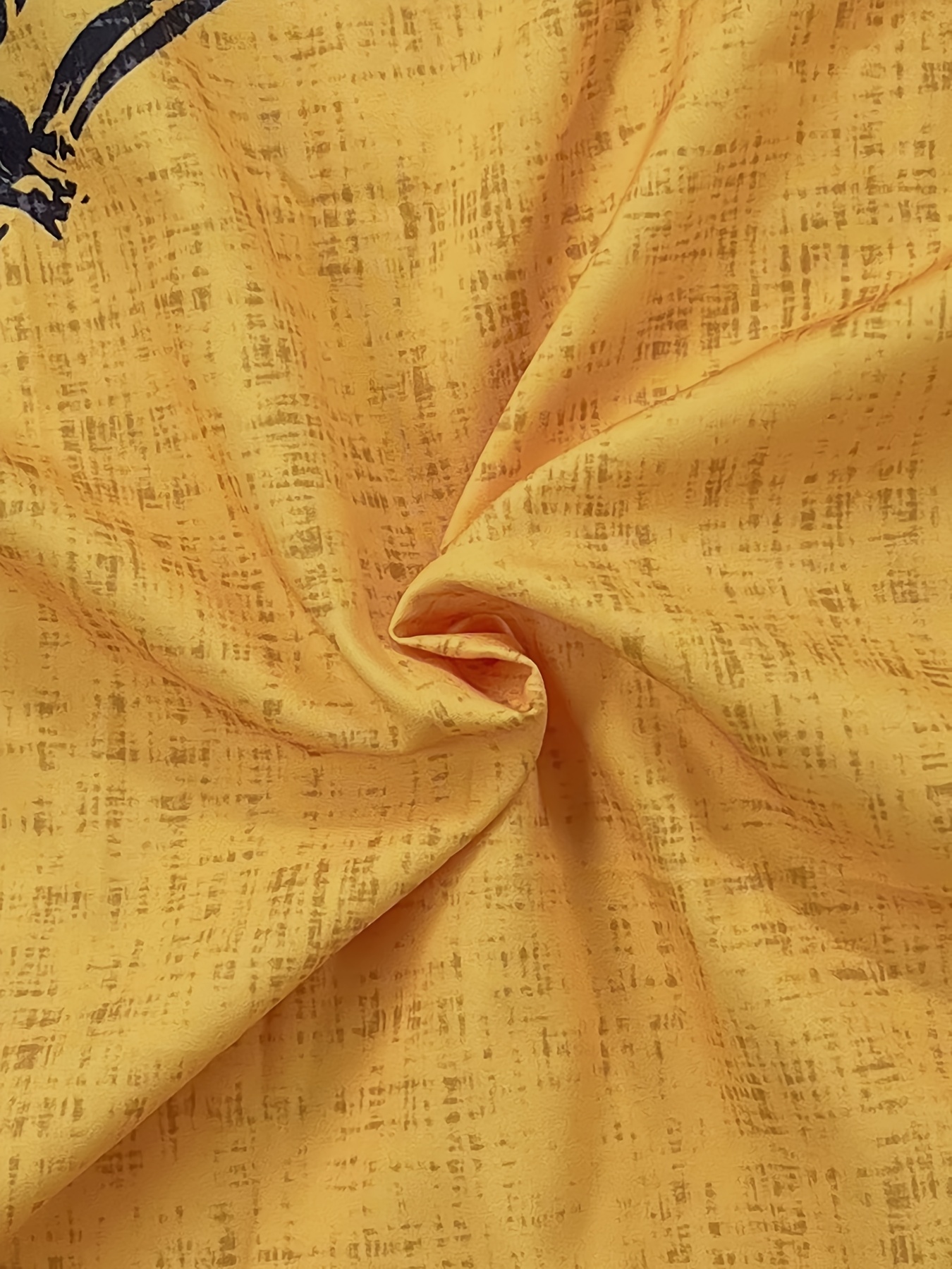Men's Lightweight Shirt - Black & Mustard-Yellow Geometric Cat Art Print Button-Up - Stand-Up Collar Casual Beach Vacation Outfit - Machine Washable Summer Blouse for Everyday & Formal Events, Beach Clothes, Nontransparent Fabric