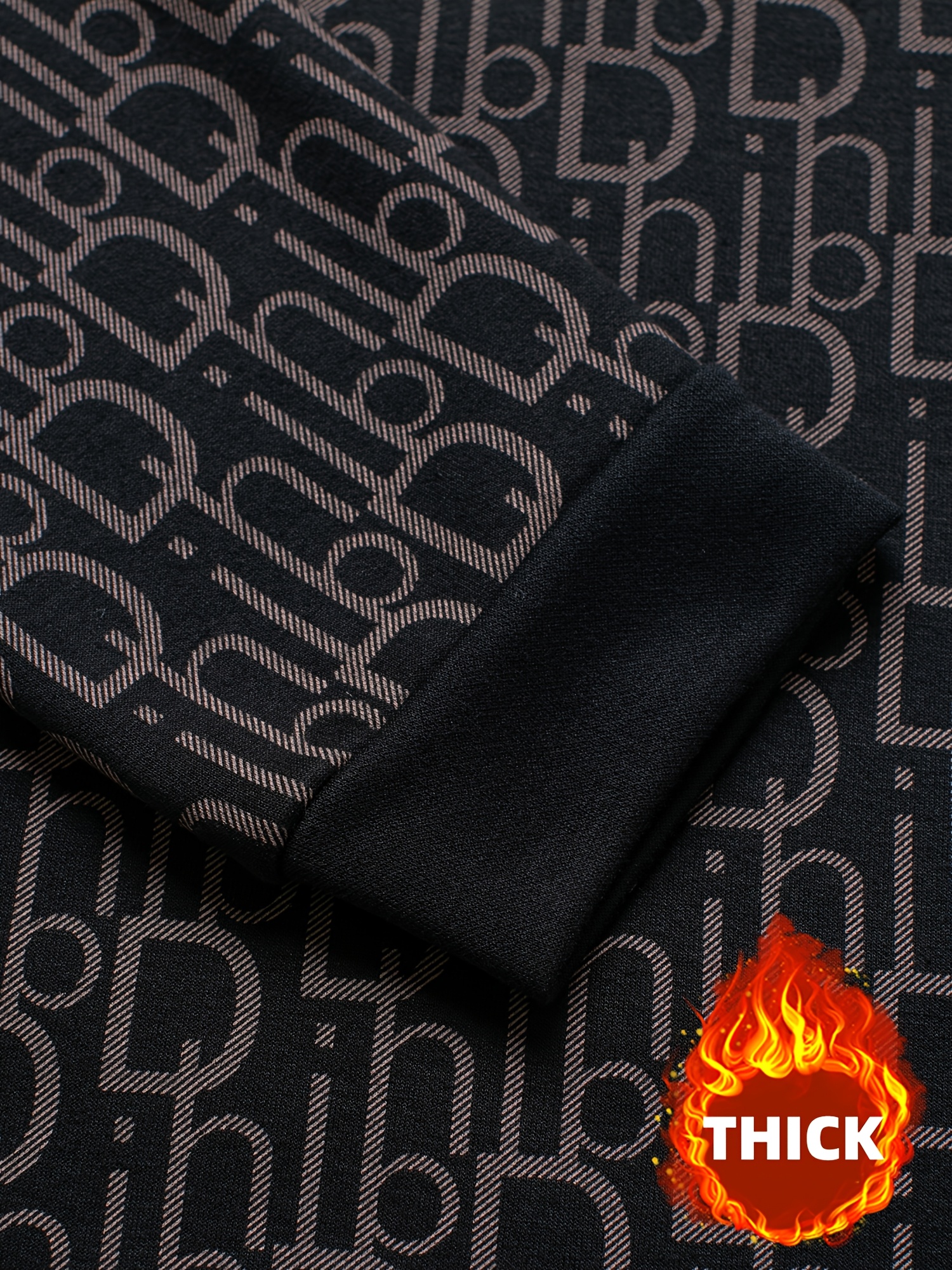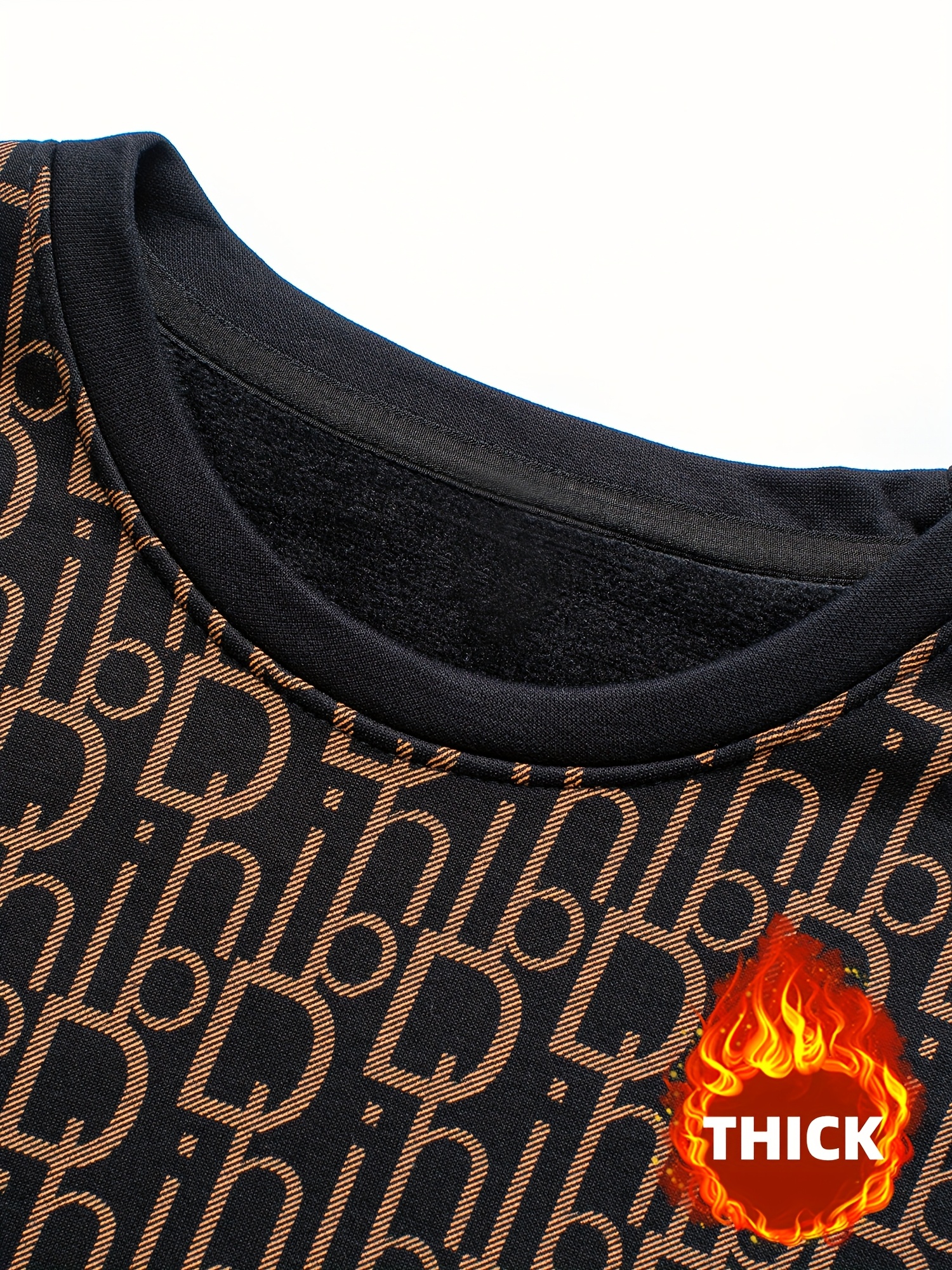Men's Thermal Fleece-Lined Crewneck Sweatshirt - Thick Winter Warmth with Bold Letter Graphic, Soft Casual Long Sleeve Pullover, Machine Washable Cold Weather Gift for Him, Winter Sweaters, Cold Weather Apparel, Stylish Pullover