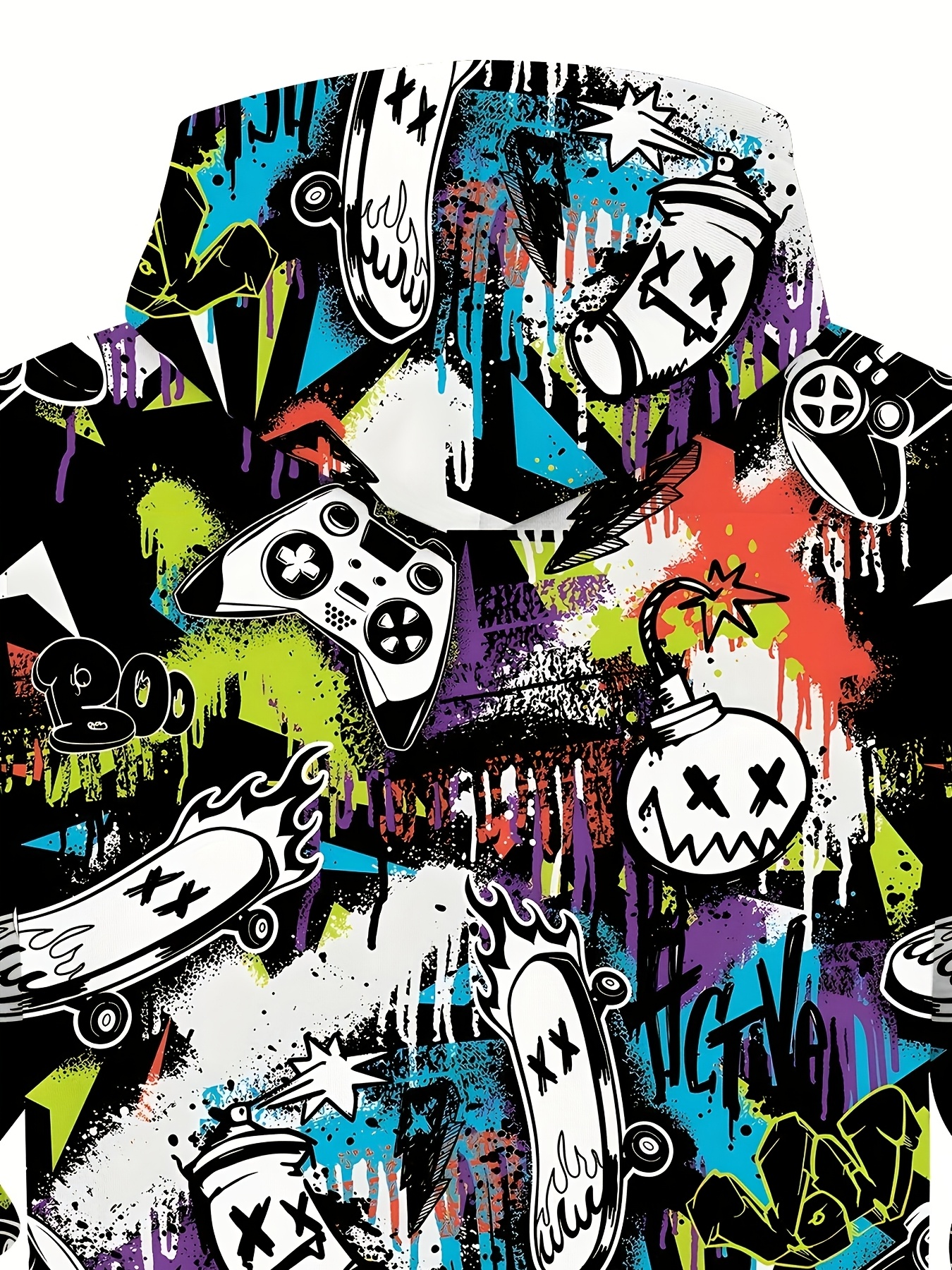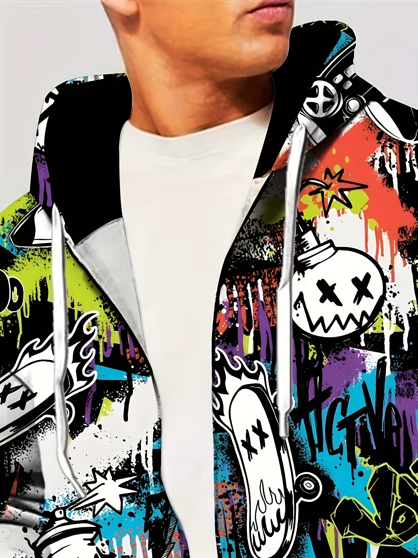 [1pc Men'S Novelty Hooded Jacket] 1pc Men'S Novelty Hooded Jacket, Casual Geometric Pattern Knit Polyester Fiber, Regular Fit Spring/Autumn Outerwear with Zip Closure