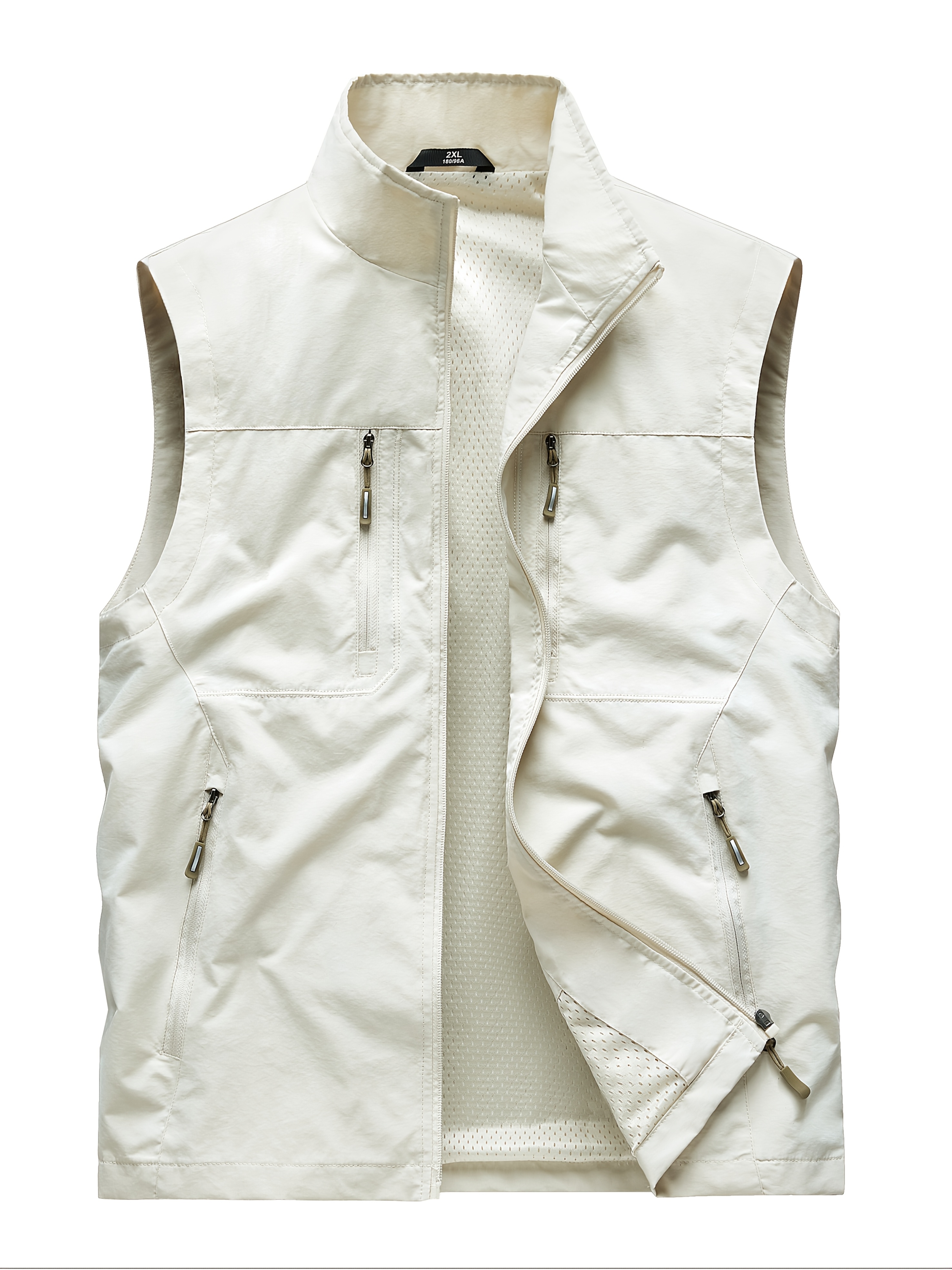 6801 Multi-Pocket Outdoor Vest - Sleeveless Stand Collar Casual Hiking & Travel Vest with Multiple Pockets, Durable Non-Stretch Fabric, All-Season Use, Hand Washable, Hiking Gear, Secure Zipper Closure