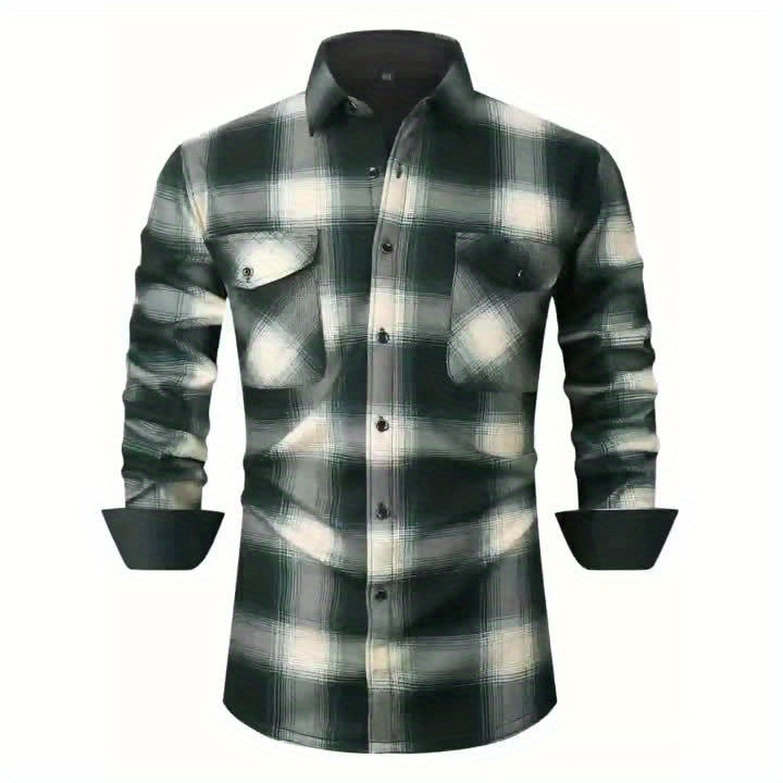 Autumn and Winter Thickened Fleece-Lined Men's Classic Outdoor Casual Home Office Wrinkle-Resistant Plaid Shirt with Multiple Pockets