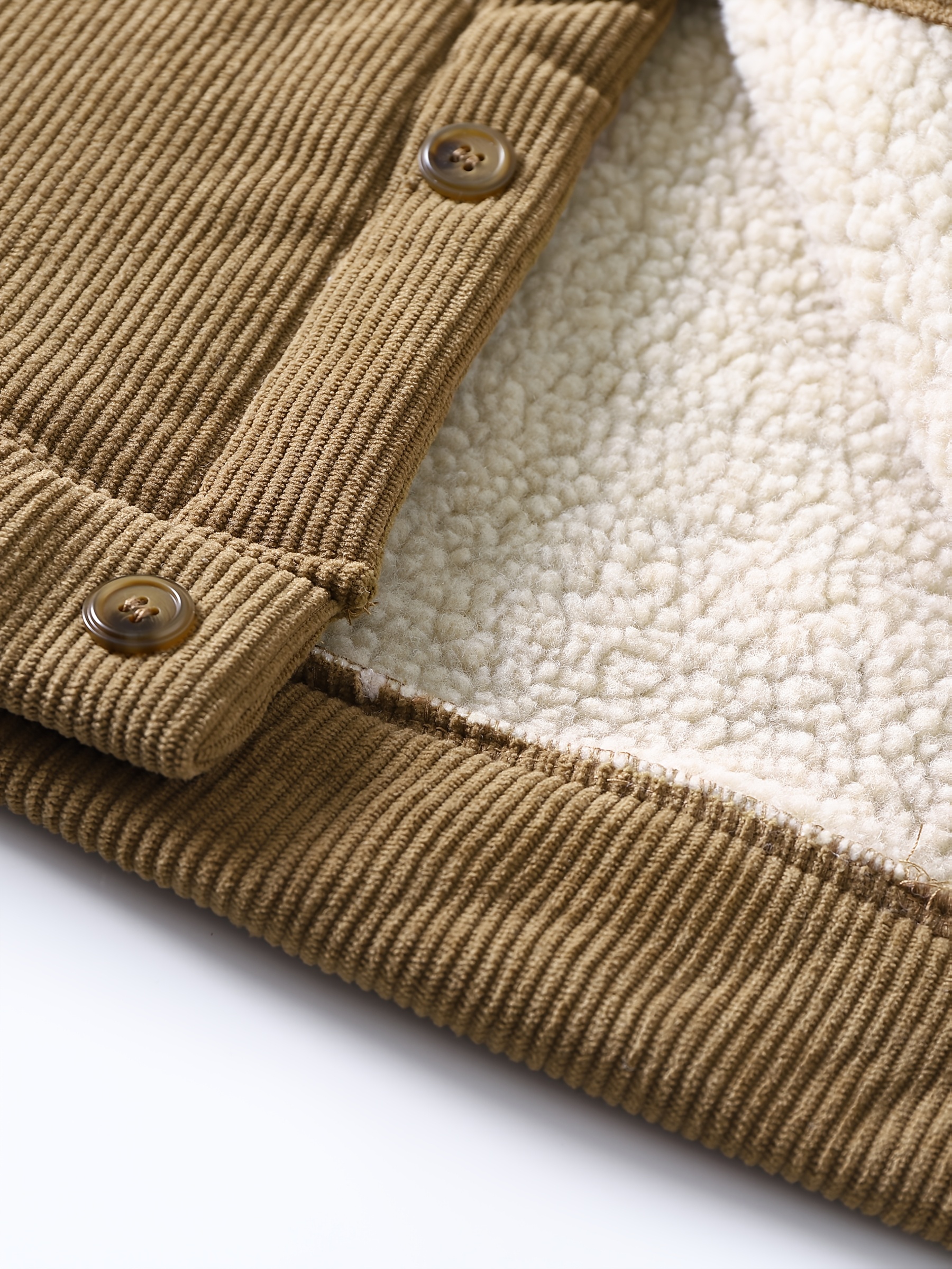 [Heavyweight Winter Jacket] Winter Heavyweight Men's Jacket | Corduroy Texture, Fleece Lining, Flip Collar, Double Pockets, Single-Button Closure, Machine Washable Polyester, Regular Fit Casual Outerwear