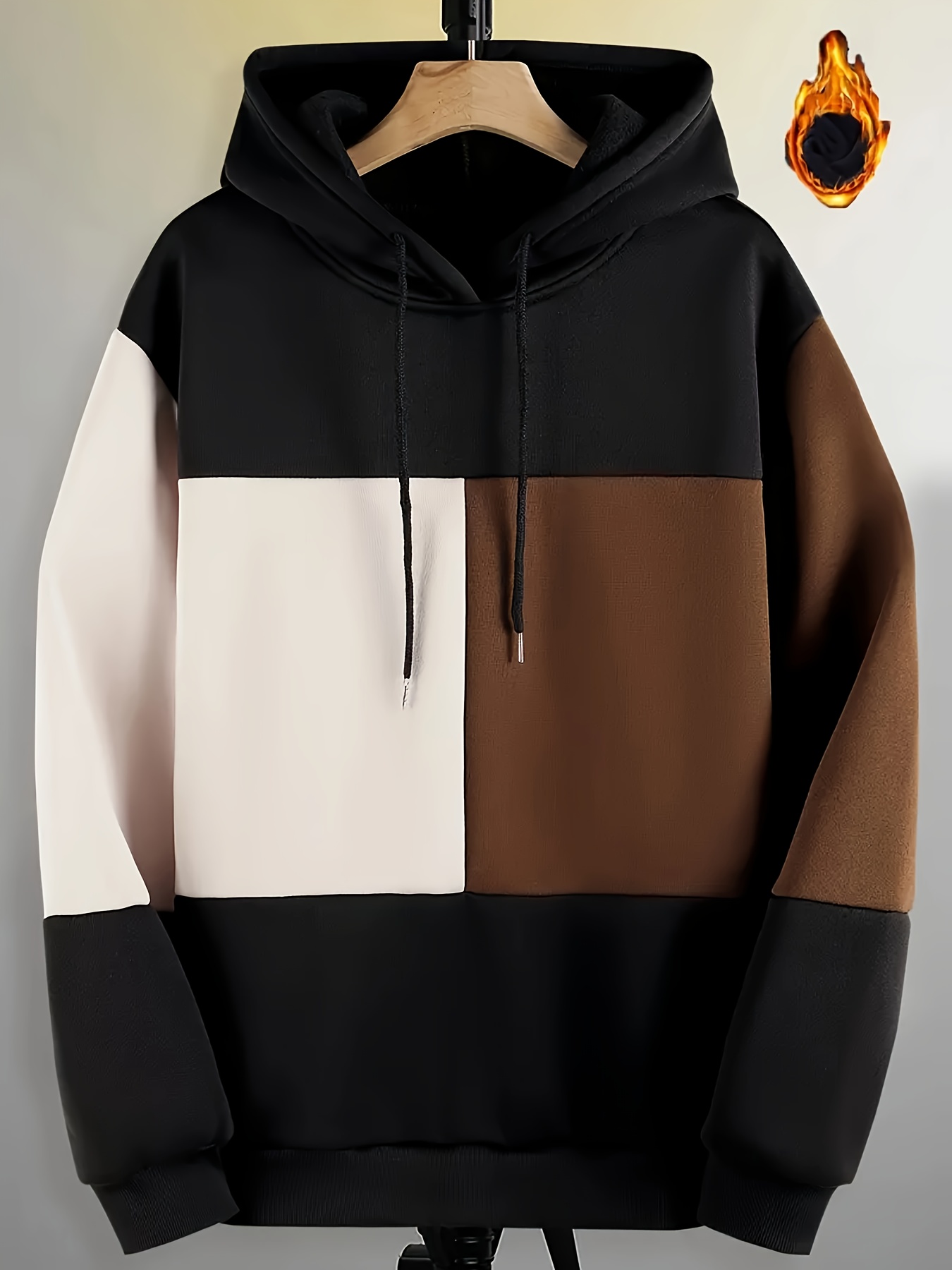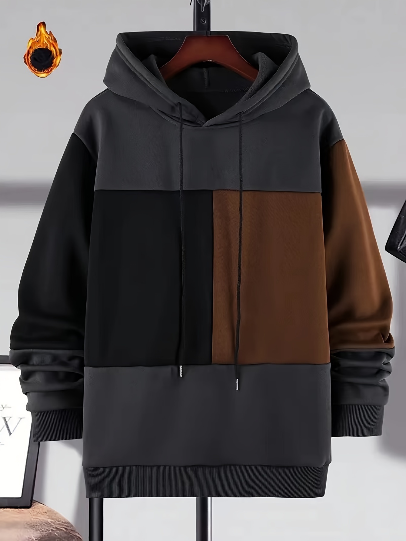 Comfortable Polyester Men's Casual Loose Fit Hoodie, Adjustable Drawstring Fashionable Hooded Sweatshirt For Fall And Winter