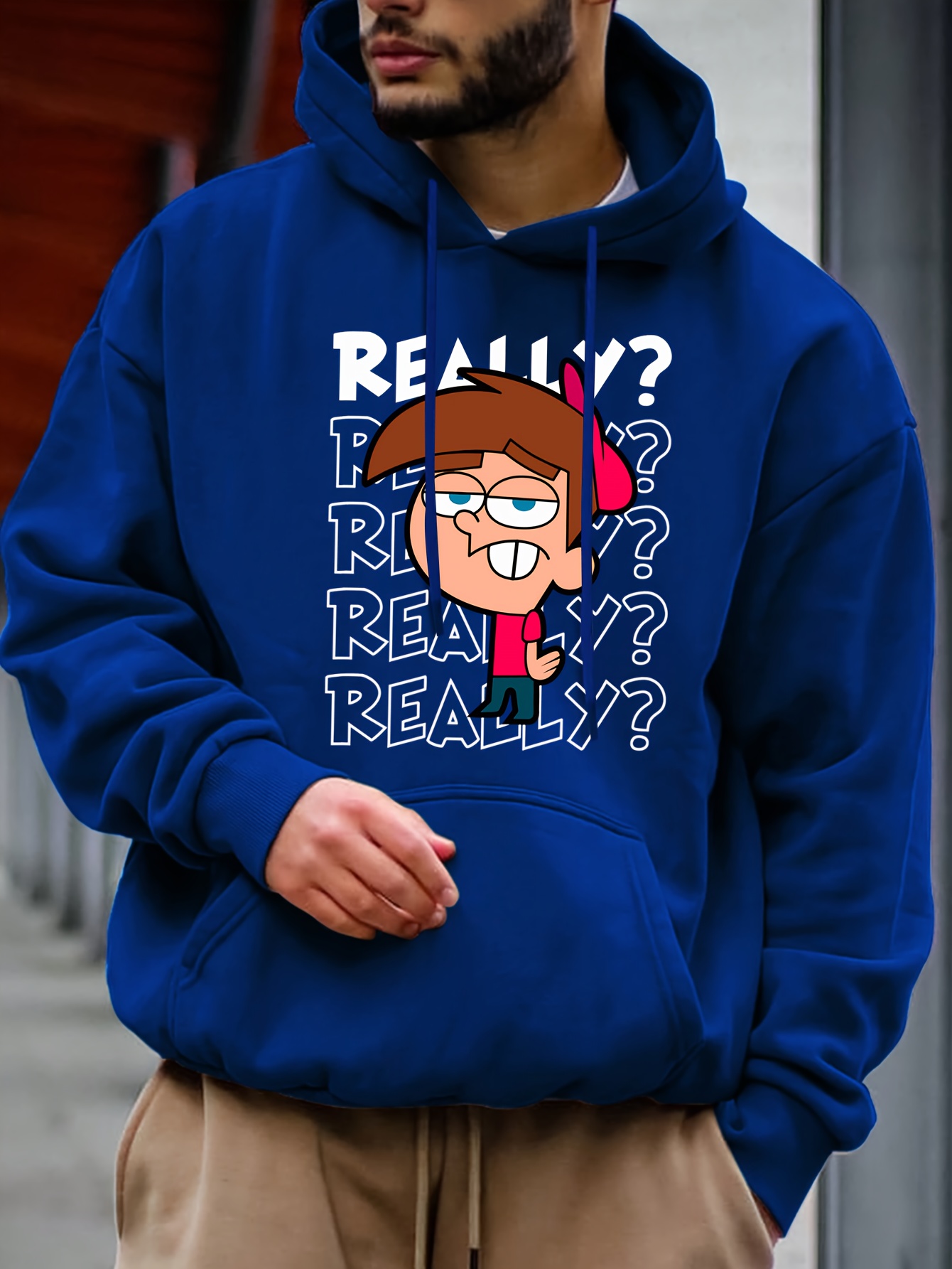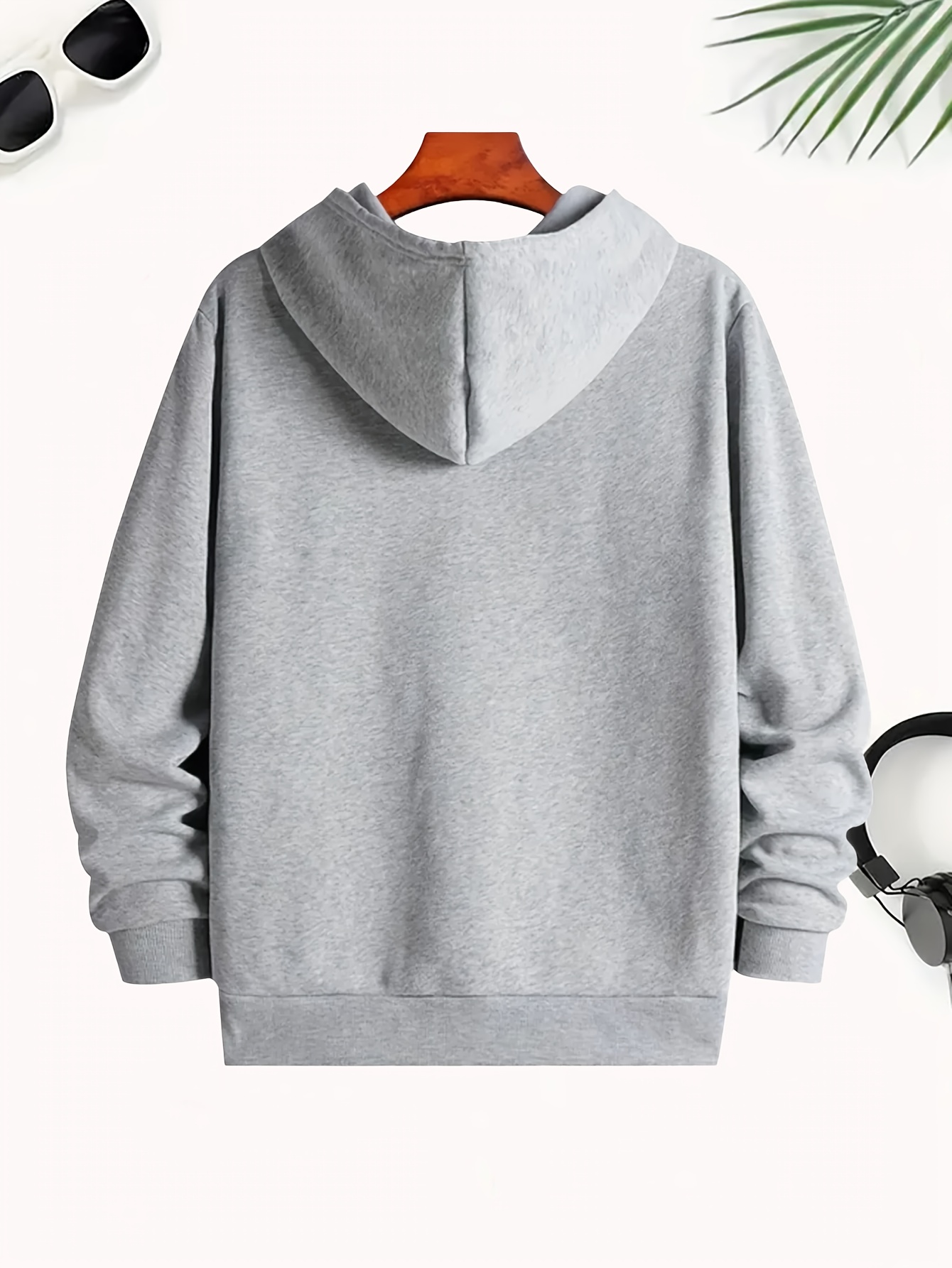 [Cozy Cartoon Hoodie] Cozy Comfort Cartoon Print Men's Hoodie | Long Sleeve Pullover with Fun Animated Character Design, Light Gray, Perfect for Fall and Winter