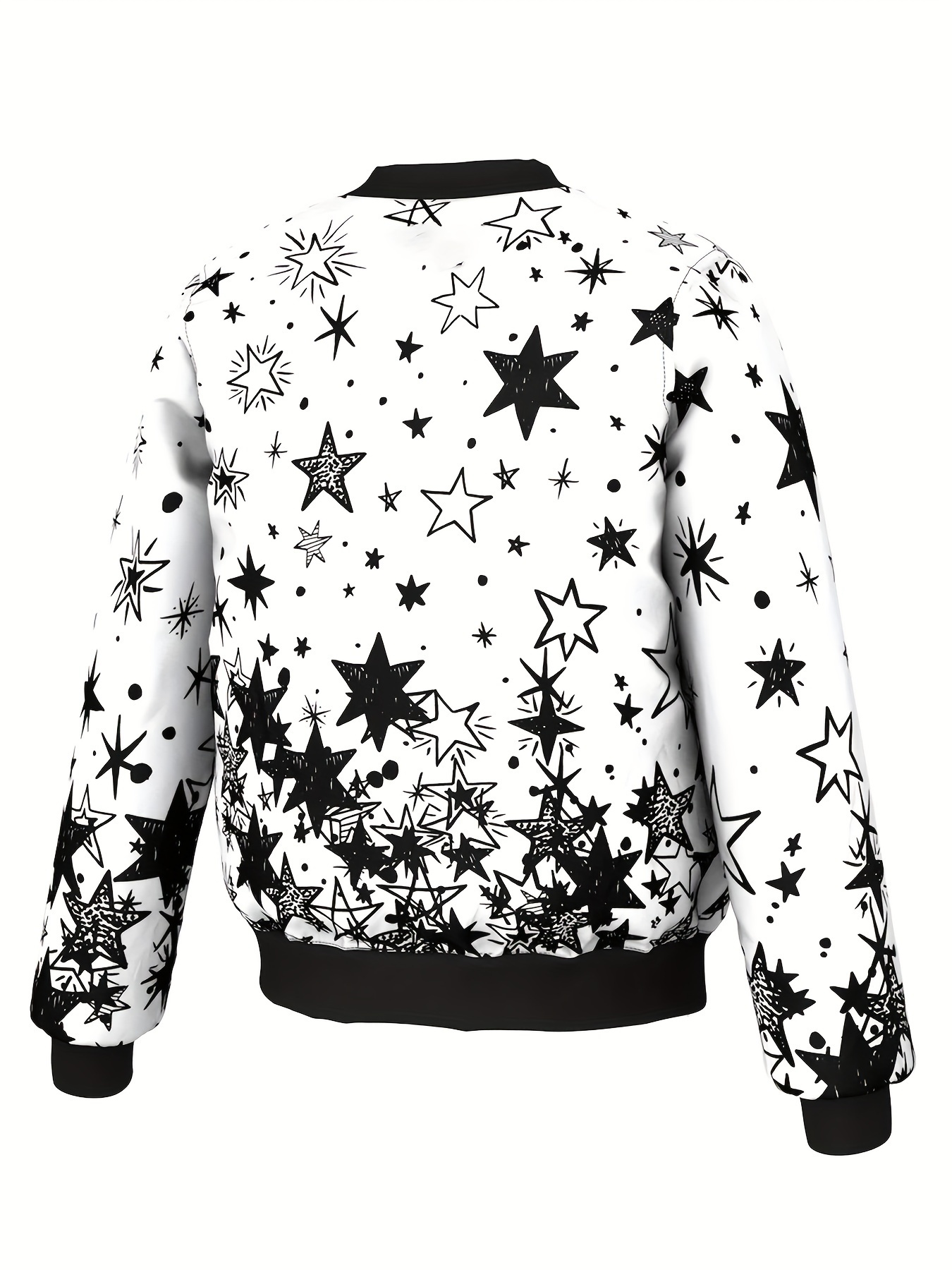 Men's Sporty Starry Sky Print Jacket - Polyester, Zip-Up Baseball Collar with Pockets, Machine Washable - Perfect for Spring/Fall