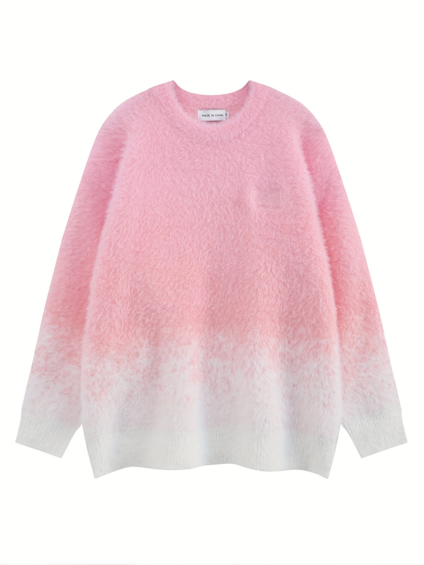 Men's Mid Stretch All Match Knitted Ombre Crew Neck Pullover Sweater for Fall Winter
