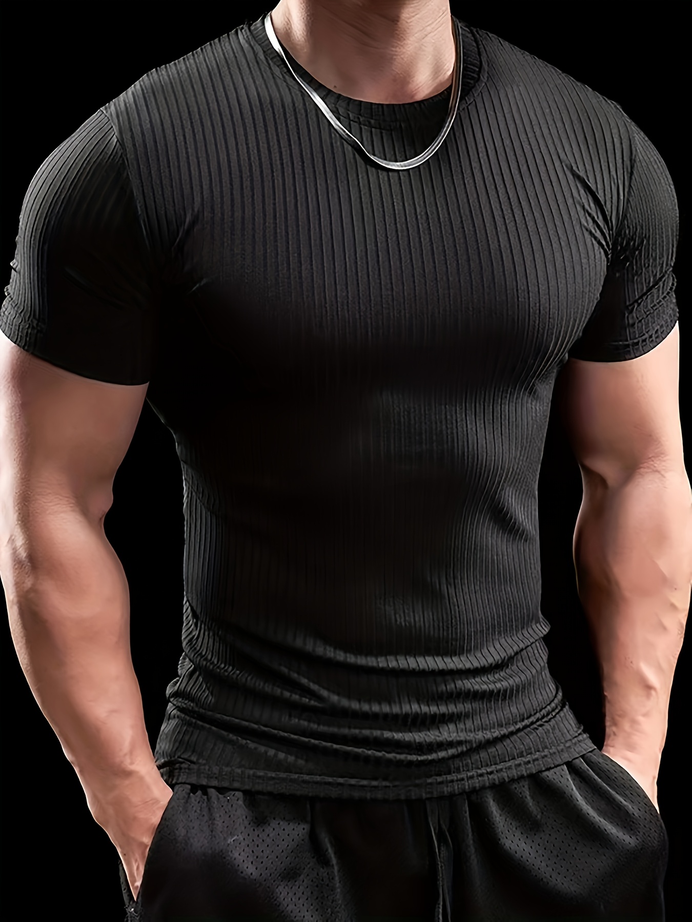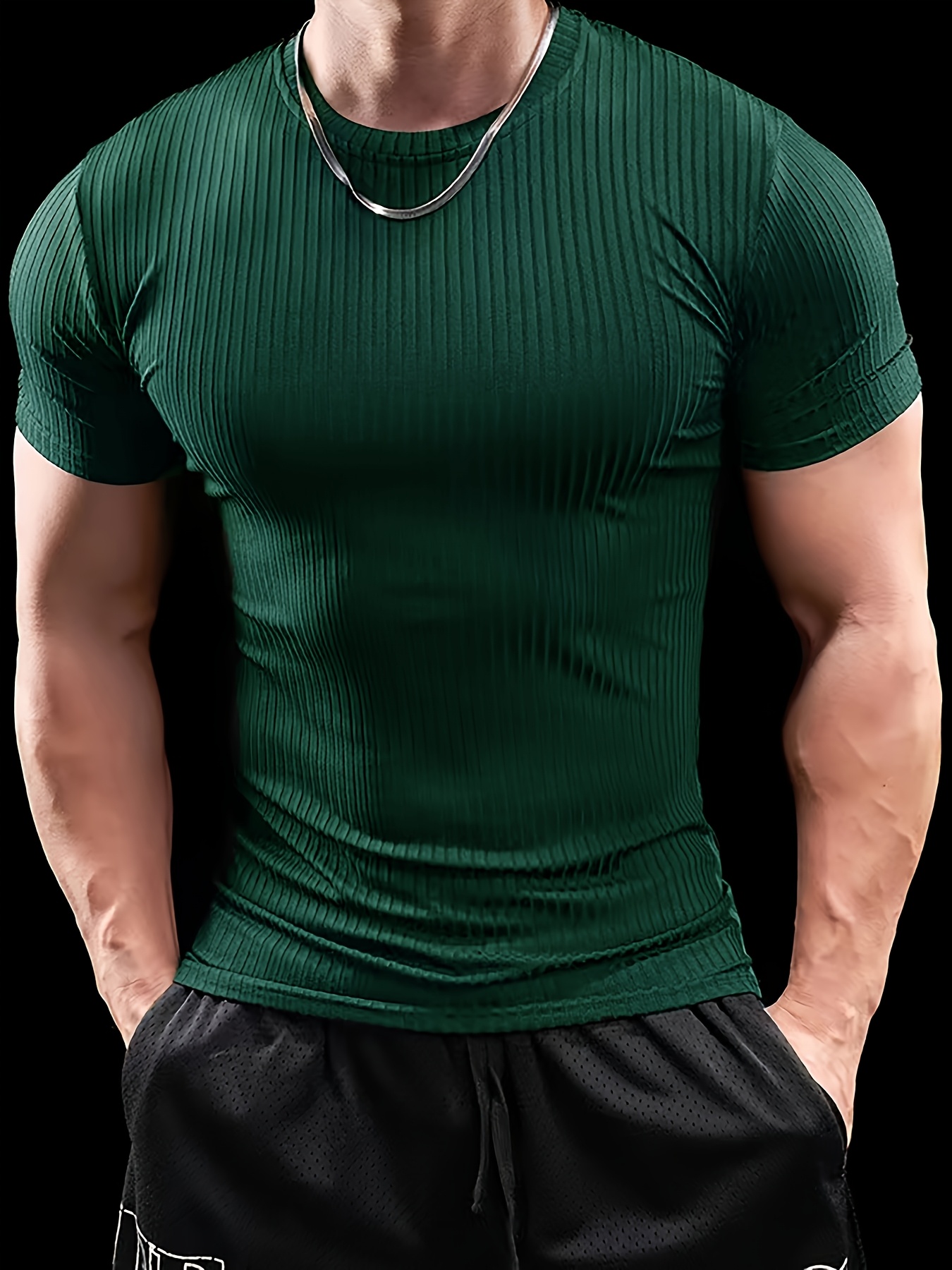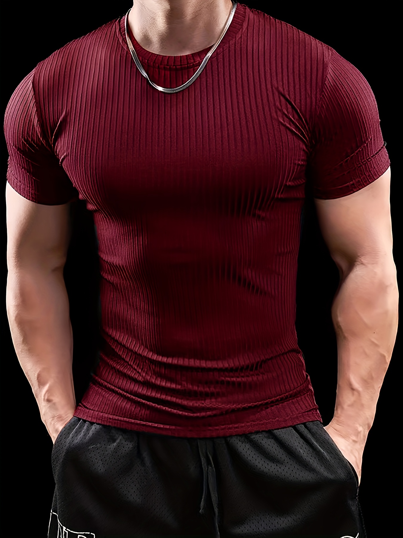 5pcs Men'S Short Sleeve Ribbed Knit T-Shirts - Breathable & Comfortable, Casual Solid Color Crew Neck Tees for Spring/Summer, Lightweight Polyester Blend, Perfect for Casual Attire, Spring Summer Apparel | Casual Style | Comfortable Fit