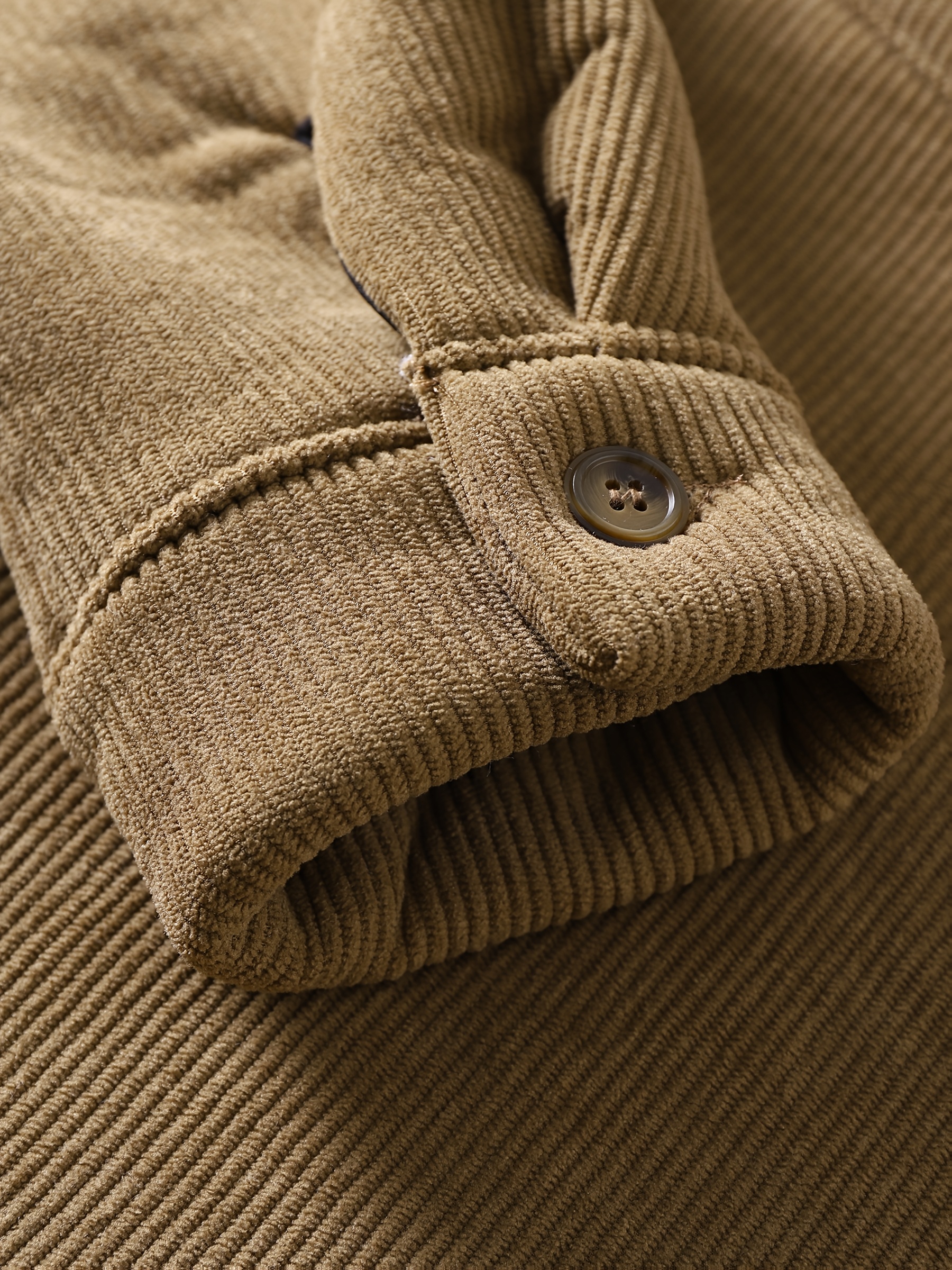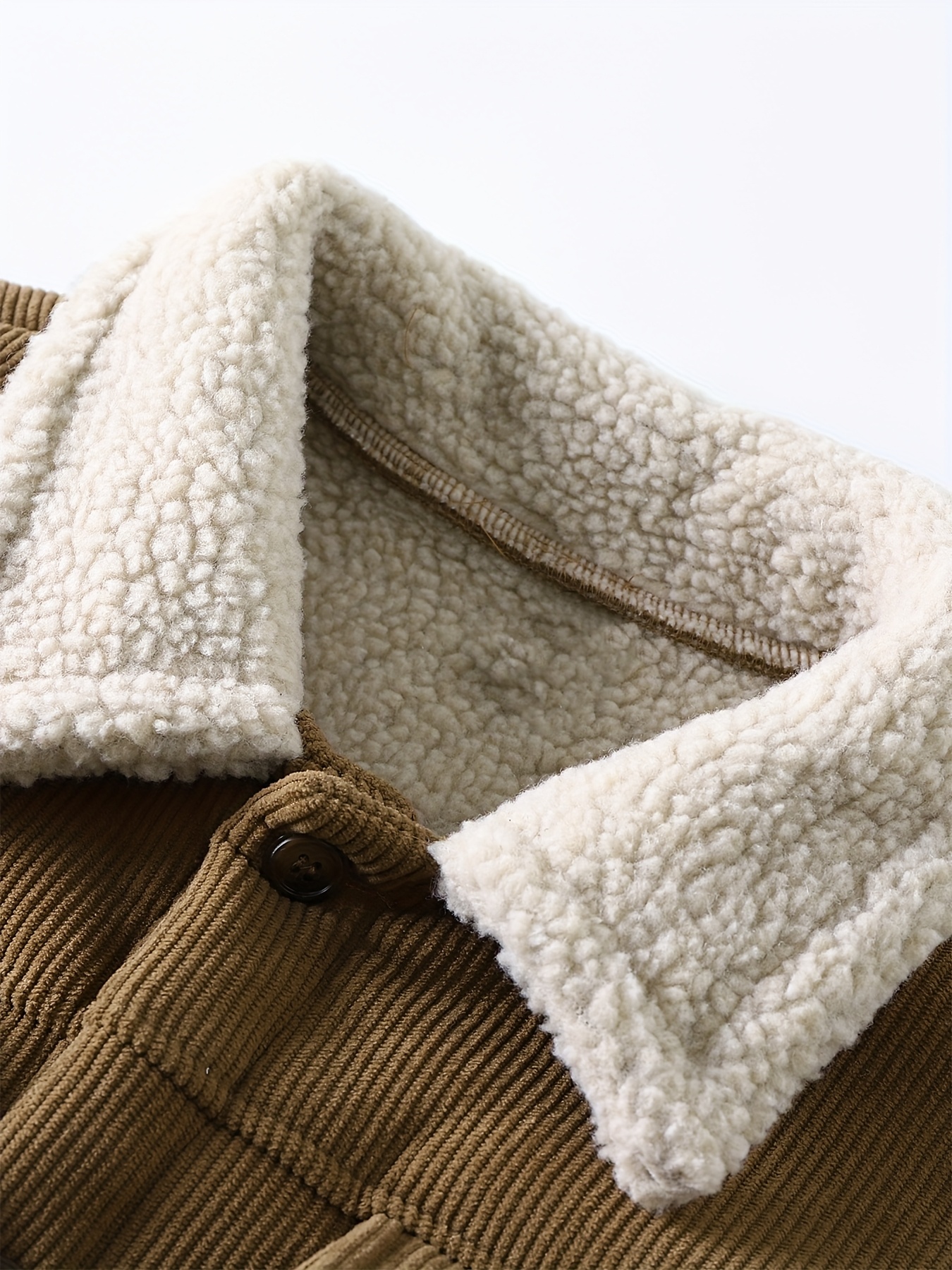 [Heavyweight Winter Jacket] Winter Heavyweight Men's Jacket | Corduroy Texture, Fleece Lining, Flip Collar, Double Pockets, Single-Button Closure, Machine Washable Polyester, Regular Fit Casual Outerwear