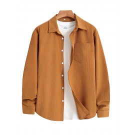 [Men's Corduroy Shirt Jacket] Bohemian Corduroy Shirt Jacket - Men's Solid Color Relaxed Fit Long Sleeve with Chest Pockets, Classic Collar & All-Season Versatile Style for Casual & Formal Wear, Durable Fabric