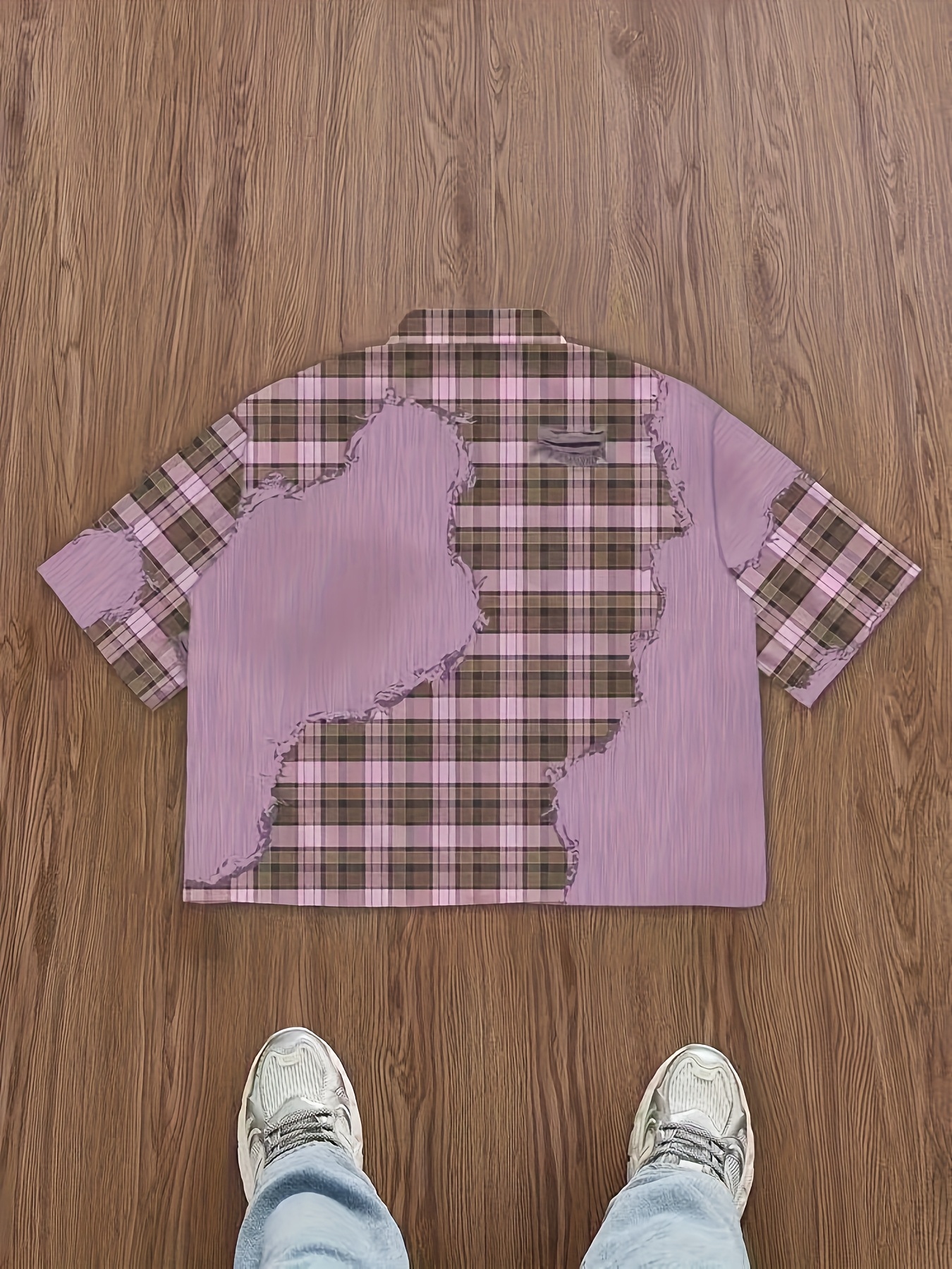Men'S Casual Plaid Patchwork Short - Brown & White Checkered Pattern, Loose Fit Streetwear Style, Non-Stretch Fabric, Perfect for Camping & Casual Attire, Camping Apparel | Checkered Pattern Shirt | Nonstretch Fabric, Compression Shirt for Men, Gym