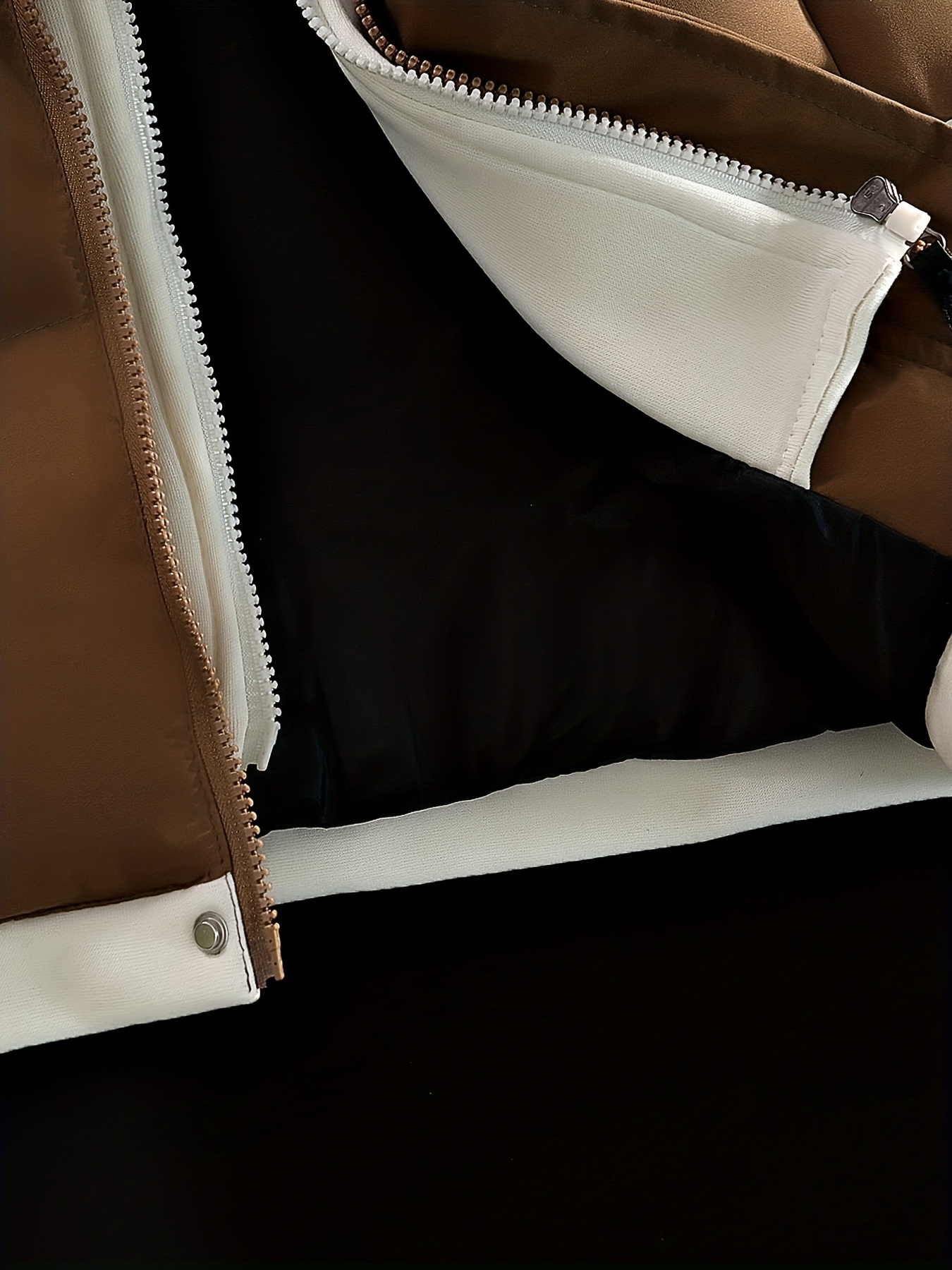 Men'S Hooded Vest - Thickened Warm Sleeveless Jacket with Zipper Closure, Red & Color Block Design, Polyester Lining, Casual Style for Cold Weather, Unisex Couple'S Outerwear, Multiple Colors Available, Winter Vest, Cold Weather Apparel